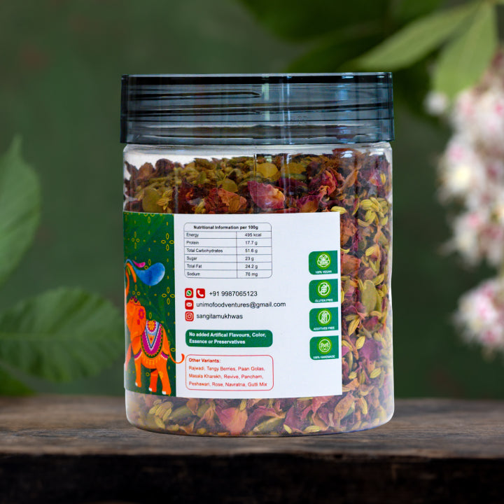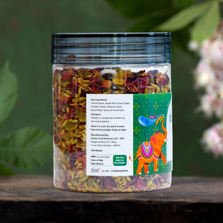 Rose brings together the natural goodness of Fennel Seeds πΈ, Pumpkin Seeds π, Sesame Seeds πΏ, Rock Sugar β¨ & Rose Petals πΉ β a unique mix that refreshes your palate and supports wellness.